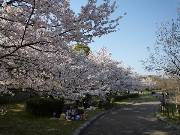 シートを広げてお花見してる人や、子供を連れて賑やかな家族、
